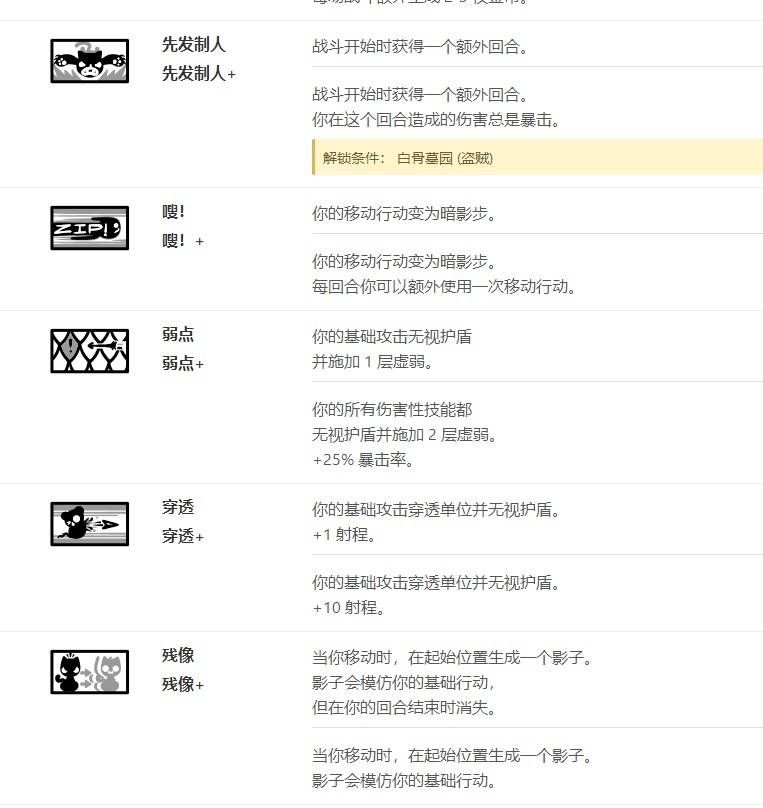 13.弱点,2分 完全的穿透下位,除非开门自带不然不会抓。升级版所有技能无视护盾,可盗贼的特点就是大部分技能无视护盾,完全无用。