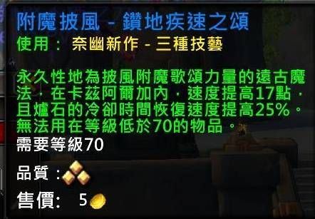 「利用地心之战的速度附魔和宝石,最高可以叠到20%跑速。」