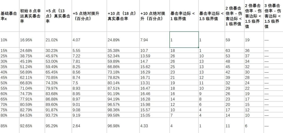 以下是在ai的辅佐下幸运对概率以及暴击伤害期望提升的影响。
