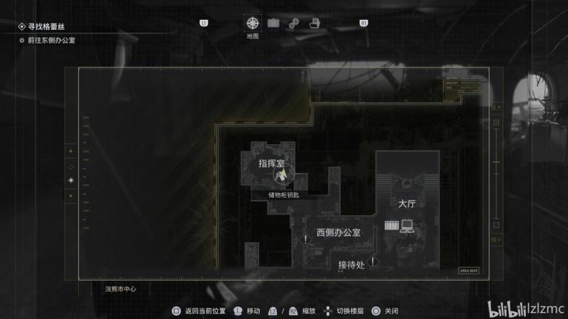 从图书馆回到1楼接待处,使用千斤顶出去到大厅,再来到大厅东南方使用千斤顶,开门后往前走剧情。