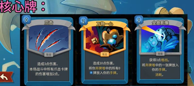 万物一心:核心启动,将弃牌堆所有0费牌拉回手牌,实现无限循环。