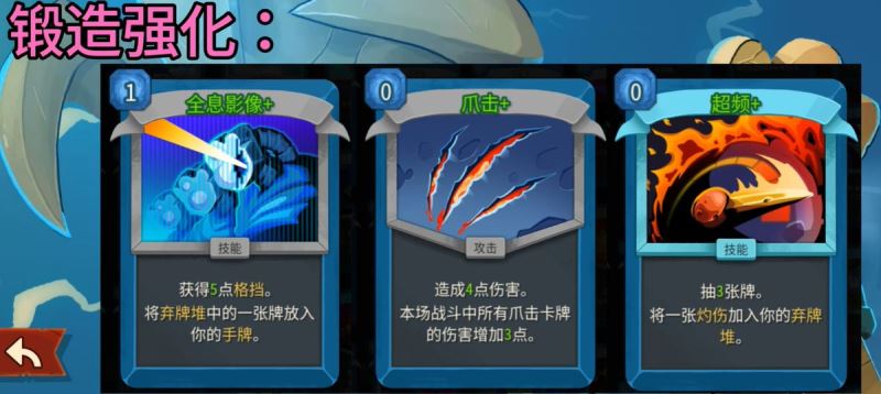 爪击:0费攻击,每打出1次,所有爪击伤害永久+2,基础3伤,叠满后单爪可打30+。
