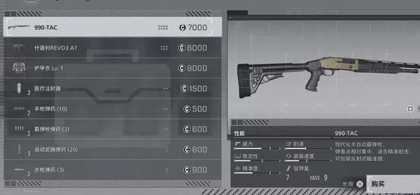进入营地补给箱→选择购买武器→找到990-TAC→花费7000点数购买。