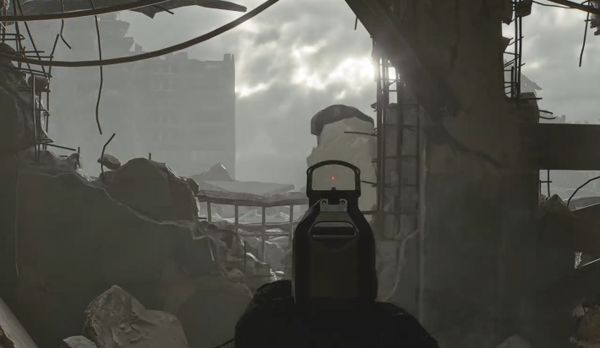 注意:此处视角受限,建议贴墙移动,避免被废墟遮挡。
