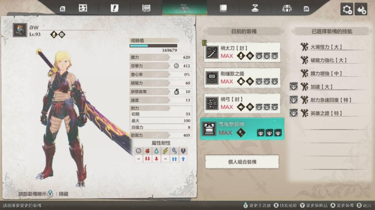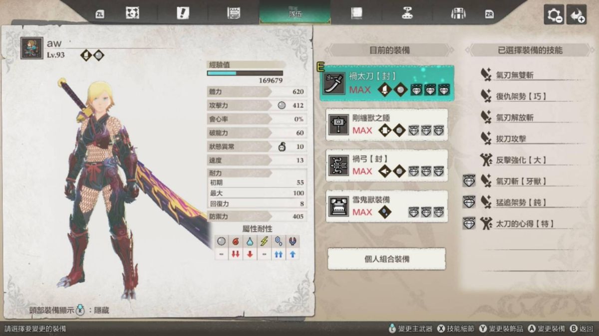 前面三个还好,最后主要都是卡在风神和雷神,而我的打法主要还是都以龙气为主,毕竟这代消龙气真的很强势,所以我的配装长这样: