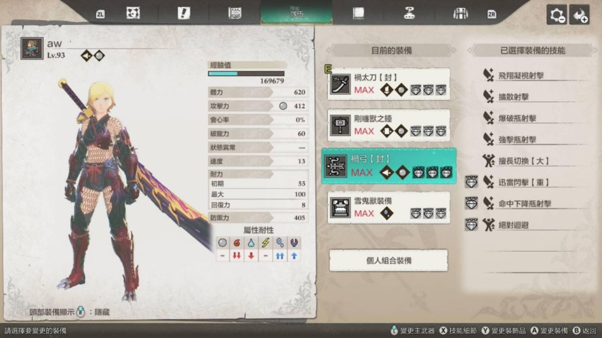 另外还有一个重点是绝对回避,用来闪大招很好用,只是耗耐太凶了,不太能常放。比铳枪的勇气防御好的是不会吃到攻击,所以不会吃到debuff。获取方式是隐世骑士第三个任务解完。
