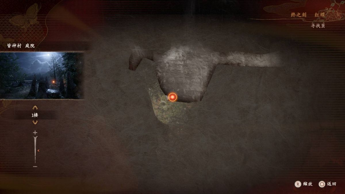前往【皆神村 庭院】,可以看到小时候姐妹的浮灵,拍照并捡取【发光的澪的灵石碎片】