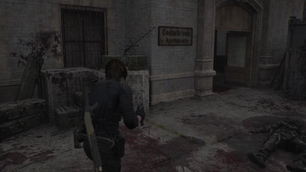回到找到BSAA补给箱钥匙的地方,这次从雪松溪公寓的正门进去。