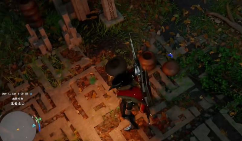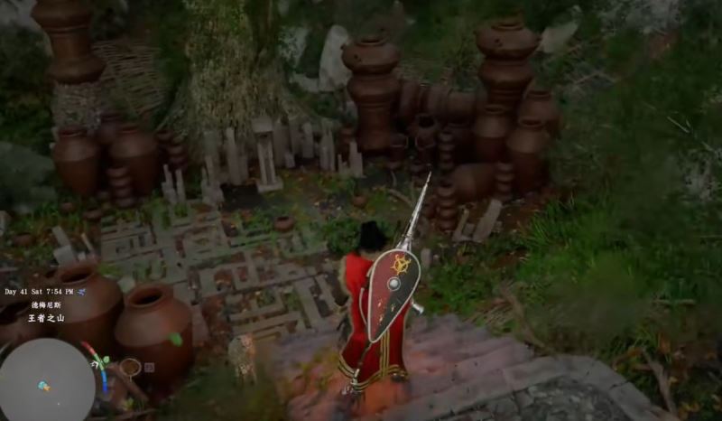 到王者之山古代遗迹,找到中央固定陶罐与四周散落陶罐,用近战或远程击碎所有可交互陶罐获取堆叠素材。