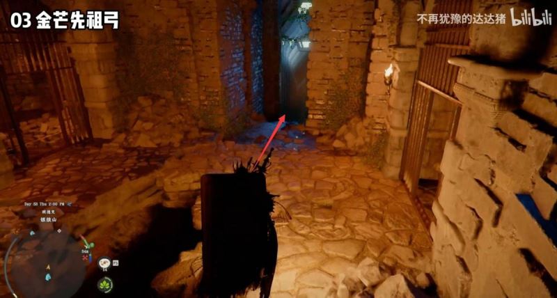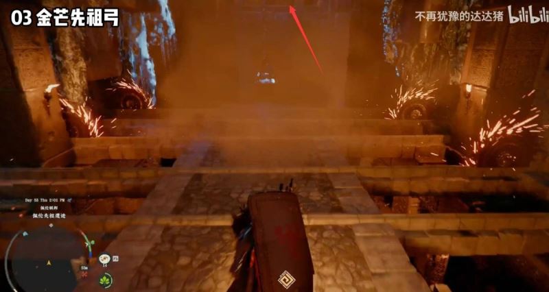 走过这些陷阱,爬上去之后,就是弓的所在位置。