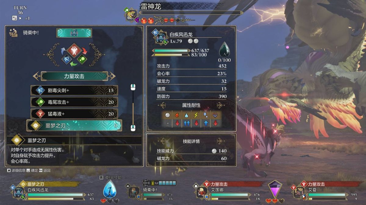 雷神龙:雷缠身/封龙状态为技巧,异体同心为速度,攻击为雷属性,大弱冰、小弱龙