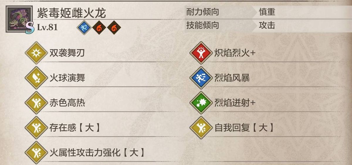 紫毒姬:三猜群攻带火球演舞、赤色高热、火强大、存在感大、自我会回复大