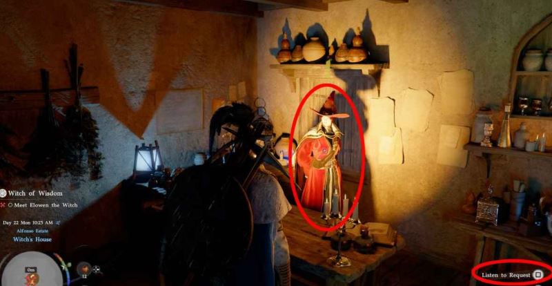 追踪任务:智慧女巫,地图上立刻出现黄色任务标记,跟着走即可。