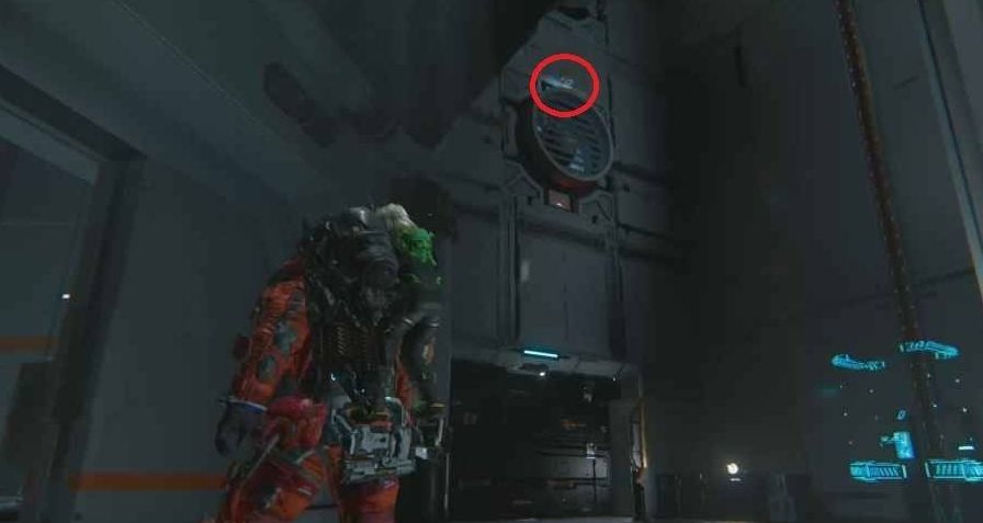 位置:解锁入侵教学、击败敌人后,在通往上层的滑索旁的通风口上方。