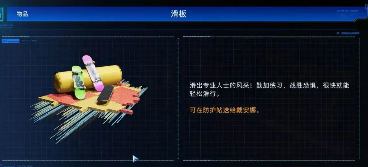 无路可走时互动中部机关,重复操作五次左右,登顶后即可获得滑板。