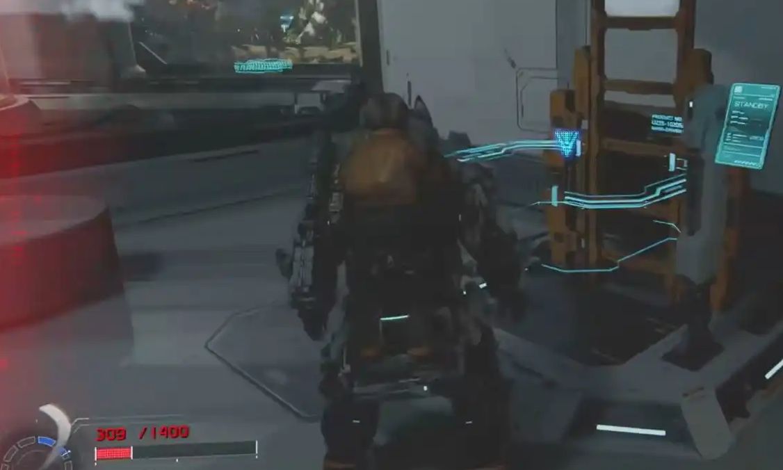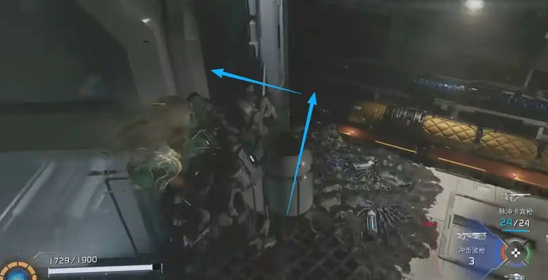 该点位位于前往BOSS的主线必经道路上,看似是单向通行路线,乘坐电梯后,左侧有一处升降平台。