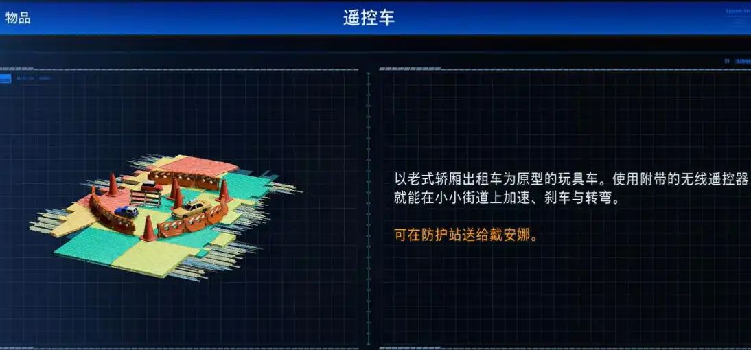 沿着通道一直深入,沿途小心躲避激光陷阱,走到通道尽头即可拾取遥控车。