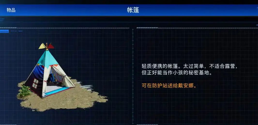 拾取帐篷后不要立刻离开,沿墙体迂回向下探索,还能收获鹰眼芯片与海量补给物资。