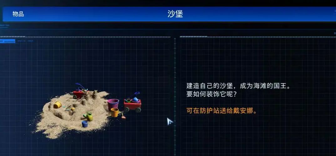 进入内部空间,依次解锁五个控制开关,大门完全开启后,就能获取最后一款玩具——沙堡。
