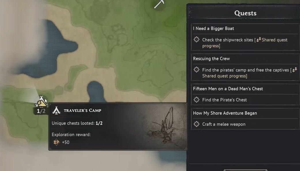旅人营地(Traveler’s Camp)固定有2个宝箱:1个明箱、1个需要铲子挖的暗箱。