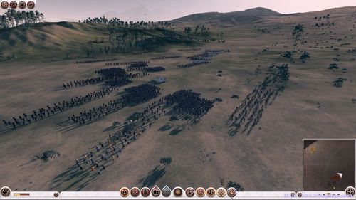 把轻骑丢中间,这个是宝贝,让他去拉怪吧,想起以前玩魔兽用法师刷副本的德行,其实罗马2的ai智商比幕府2还低,幕府2你这样去勾引敌人的部队是行不通的,幕府2的远程基本不肯脱离大队太远,如果你非要拉他基本就被射完蛋了。看这怪拉的专业,整个敌军成一弧形拉的满山遍野锻炼身体,如果遇到小山包什么的,尽量多把敌人往那里带,累死他们,基本绕地图大半圈左右敌人就口吐白沫了,轻骑开始一定要拼命绕,千万别停,不然你会被包围的很惨。如果你1:2的话,这队灭了想赢还是可以,史诗什么的就不好说了!如果你1:3的话就撤退好了,要是这队不灭,1:3照样打的过,史诗什么的也是不好说了,1:3赢后能保存住6成兵力就不错了,我打过一次2600对8000多的,就是这样打,赢了,但是损失惨重(那时候没想着要发什么心得贴,没得截图现眼一把了)不过损失惨重和全灭比起来,就是势力继续存活和灭国的区别,这代的敌人打你的城一个接一个不停的,主力被消灭你再造都来不及!
