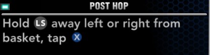 背身朝向罚球区的横向强攻:左摇杆朝向罚球区,并轻点X