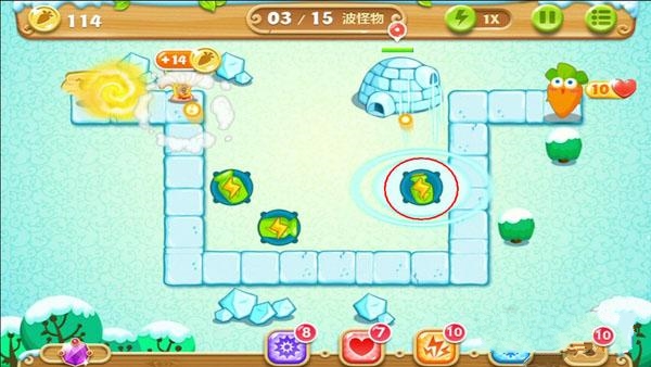 保卫萝卜2第一关通关图文攻略 极地3宝石金萝卜教程