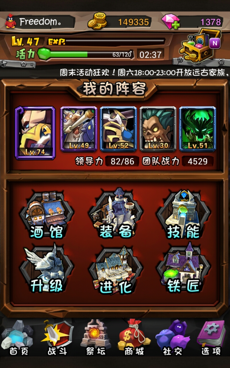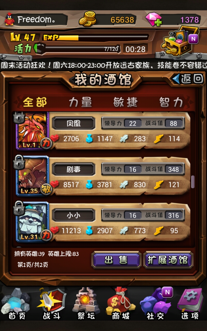 6、周末的肉山宝库和技能宝库,只要打60点疲劳的那个就行了,其他的打了都是坑,包括那个经验宝库和金币宝库也是【这里强烈推荐放弃去打经验宝库和金币宝库】,疲劳和收入真心不成正比