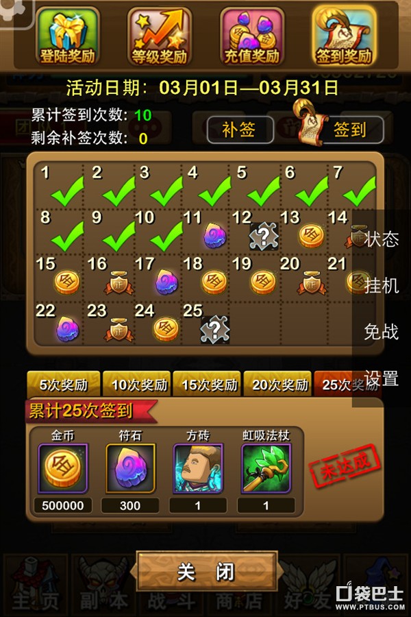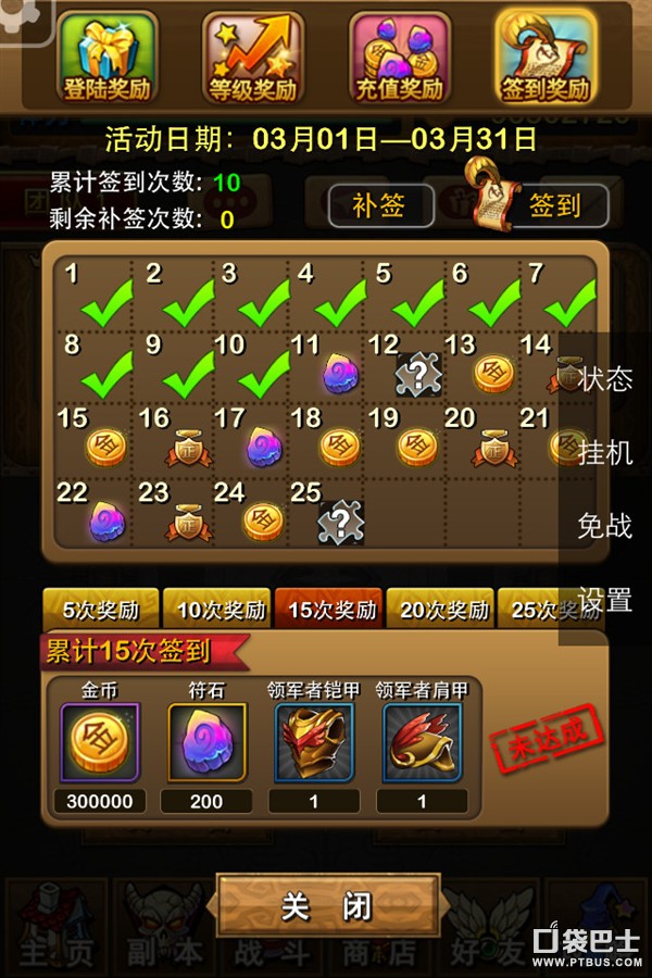 每日上线可以通过签到页面进行签到,连续登录签到和累计签到可以逐级提升获得的奖励数量、品质.