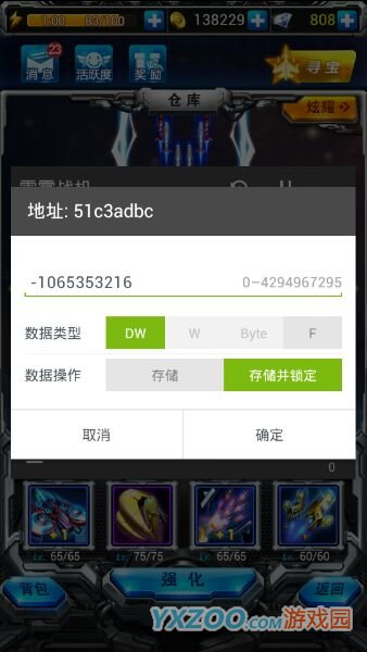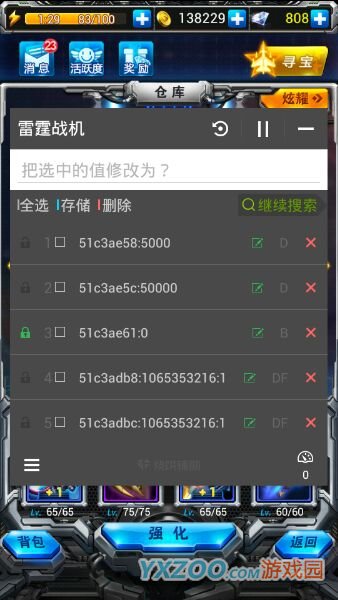 雷霆战机全自动挂机刷分刷箱子教程推荐 懒人专属版分享。仓库联合搜索5000,50000,长按5000内存工具 计算地址 偏移9 添加 返回 长按新出来的数值 选择数值修改 改成-10 修改并锁定