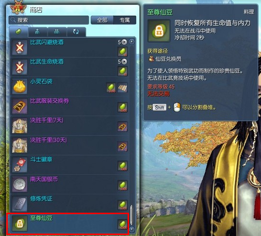 【至尊仙豆】可以在各个仙豆兑换员处,使用5000仙豆兑换而得: