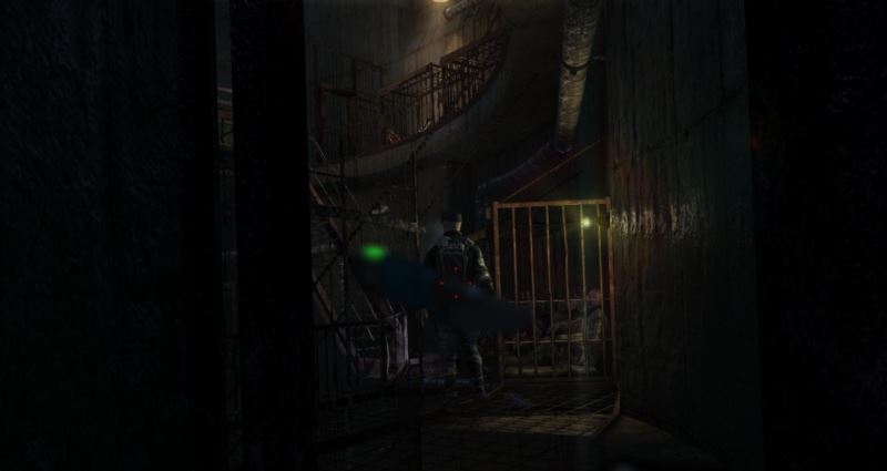 2、穿过通道来到监狱,等待头戴手电头盔的士兵走后,到达对面的拱形门下,触发剧情。
