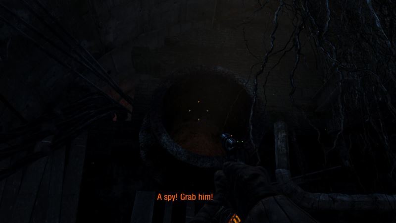 6、打开门会有看报纸的士兵投降,饶恕会有道德点,继续往前走,来到了拐角处通风口,蹲下往前面爬去。