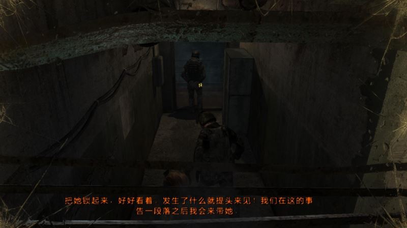 4、一直前进走到头即可离开地道继续消灭敌人,来到红色门解救队友,同时自己也身受重伤。