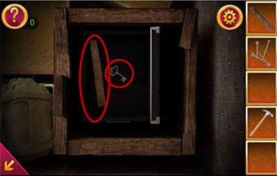 6.然后点击下面的箱子,用铁锹将箱子撬开,可以得到一根木棍。然后再用钥匙打开里面的黑色盒子,可以得到另外一把钥匙和另外一根木棍。