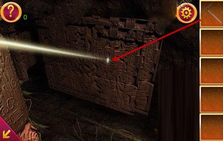 5.这时点击图中箭头所指位置,发现光传播到这面墙的内部,将木棍和铁锹组合起来,凿开墙壁,得到一个雕像。