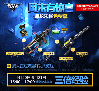 今天才星期二,逆战的每周活动就已经出来了,在新的周末中,玩家只要累积在线时长满45分钟即可获得在线礼包,还有三倍经验哦,下边一起来看看吧!
