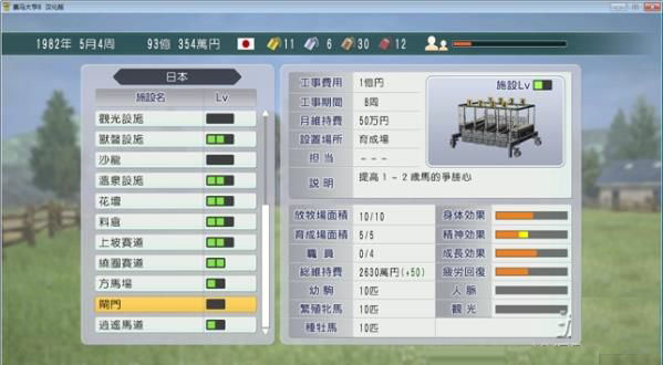 接下来就是建设牧场,等小稻妻马退役成为种母马。(母马不看比赛成绩退役可直接成为种母,但是公马必须赢得G3以上才能自动成为种马;但是每一年玩家有一次特权将任意一匹成绩很差可能成为“骑乘马”的公马成为种公。