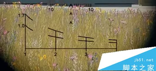 使用的时候将最下面的横线对准目标的脚,1.7那条曲线对着目标的头,若刚好对齐,则目标在距离你100米的位置