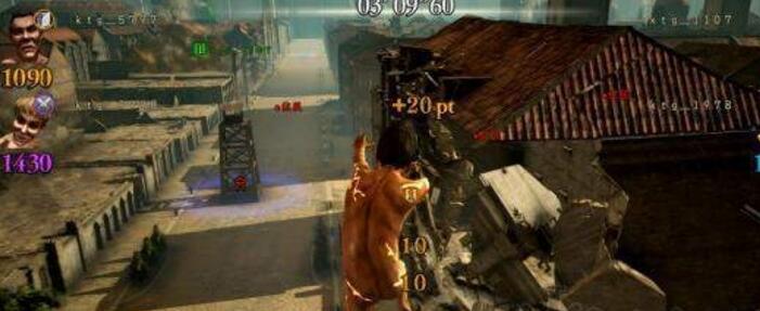 竞争谁是最凶恶的巨人,就是「捕食模式」。肆无忌惮地捕食人类、放肆地破坏建筑物与据点,这些行为都会化成玩家的得分,最多可以4人同时竞争,一决胜负。