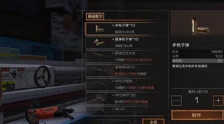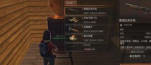制作步枪等高级点高级道具同样需要先按照配方准备好材料才行,并且需要配合相应打造台才行,如下以制作步枪为例为大伙做个简单展示: