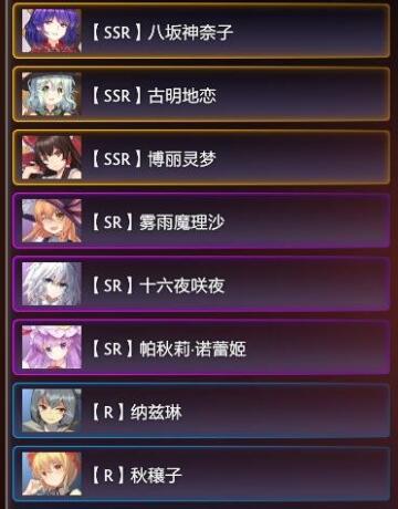 4星:琪露诺(满培养),比那名居天子,帕秋莉,西行寺幽幽子(可不要)