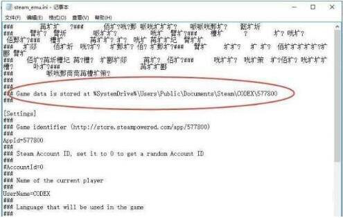 1首先在在游戏的目录中找到“steam_emu.ini”文件,打开它;