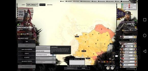 第三种方式就是外交合邦。你可以在外交界面向一个ai势力提出合邦。如果合邦成功,那么这种ai势力麾下所有武将都会加入己方。