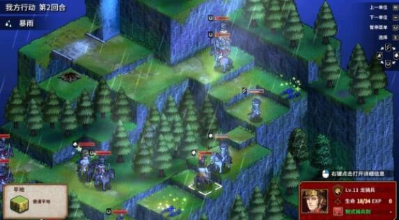 第一回合,因为胸甲的被动,15级的德赛跑起来三格加了2点护甲和第一个重骑对砍刚好无伤,然后装备上十五章送的蓝色骑士剑,正好能砍死下方冲上来的轻骑。