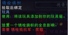 锈栓抵抗军是8.2新增的中立声望,同时也是解锁飞行成就必须的一个成就,锈栓军需官军需官位于麦卡贡行动地下城副本门口。完成麦卡贡主线任务后将解锁每日任务,每日任务和世界任务是获取锈栓抵抗军声望最好的两个途径。