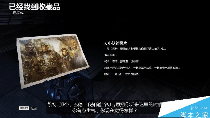 在巴德实验室的桌子上可以获得【收藏品:K小队的照片】。