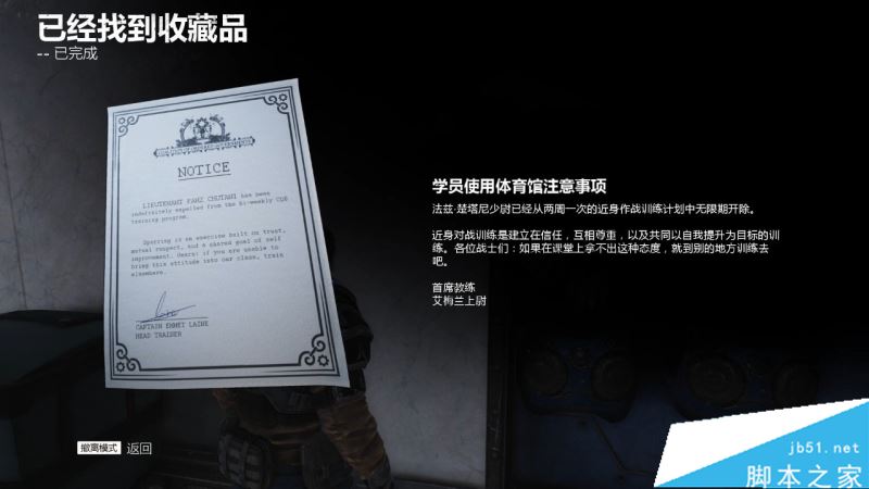 剧情结束后,在健身房的墙上获得【学员使用体育馆注意事项】。