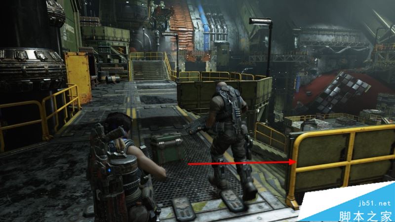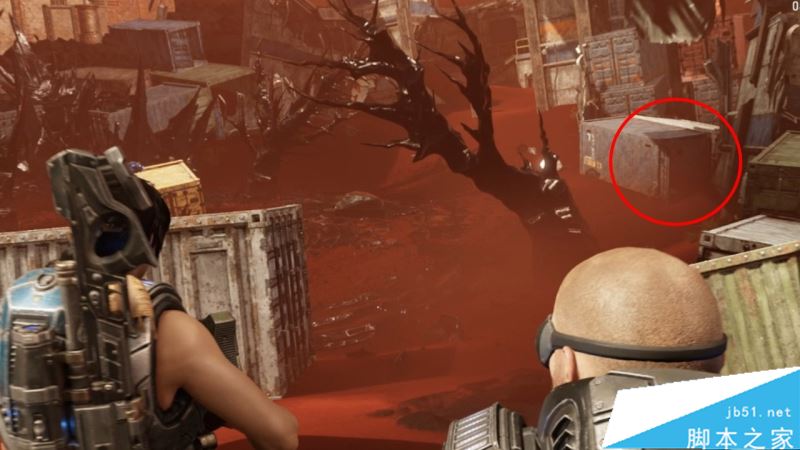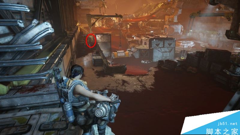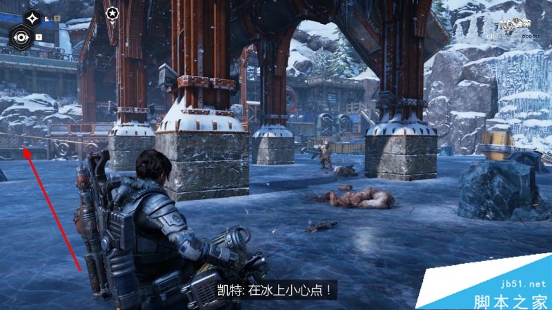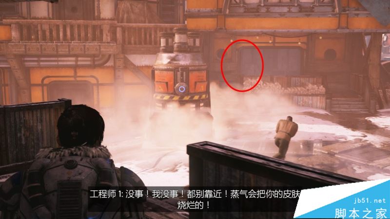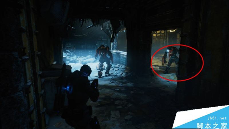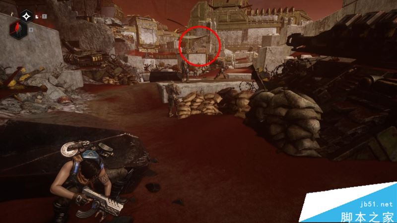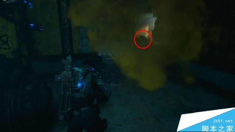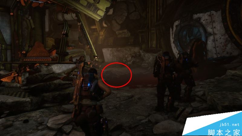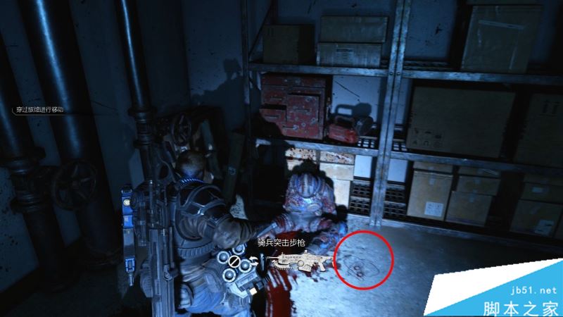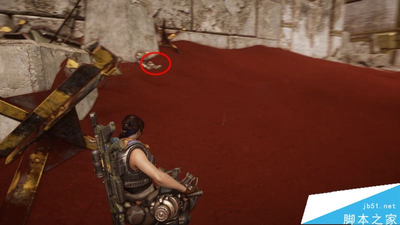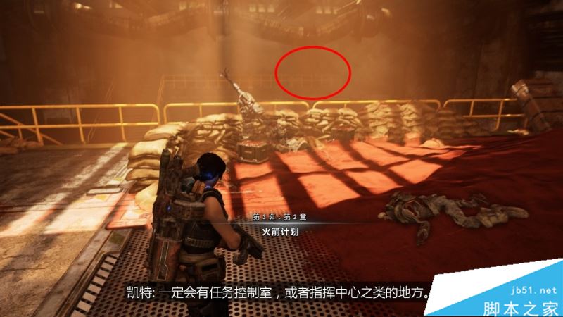 消灭完敌人后,和凯特打开通道,继续向前就会遇到掷弹兵,同样找好掩体将其以及后面来的敌人击杀。来到下图位置,向红圈位置丢一颗手雷,可以击杀大量敌人。