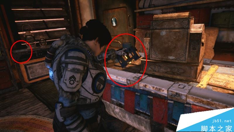 在屋子后面的更衣室里拾取另一个【杰克升级组件】。
